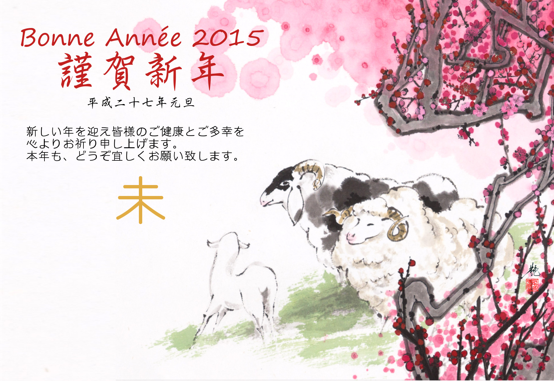 旧年中は、椿山荘個展(「Rouge(赤) & Noir(黒)・墨を彩る」)、2015年度「馬驍水墨画会作家選抜展」及び「第12回馬驍芸術大賞/第3回作家展」を成功させることが出来たことは、ひとえに皆様の暖かいご支援のお蔭と、心より御礼申し上げます。