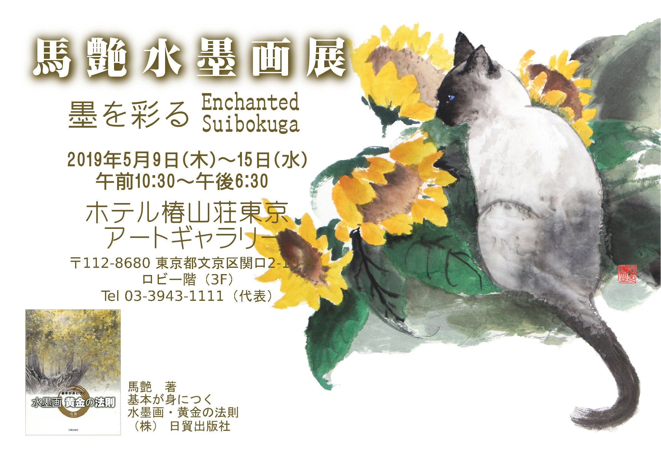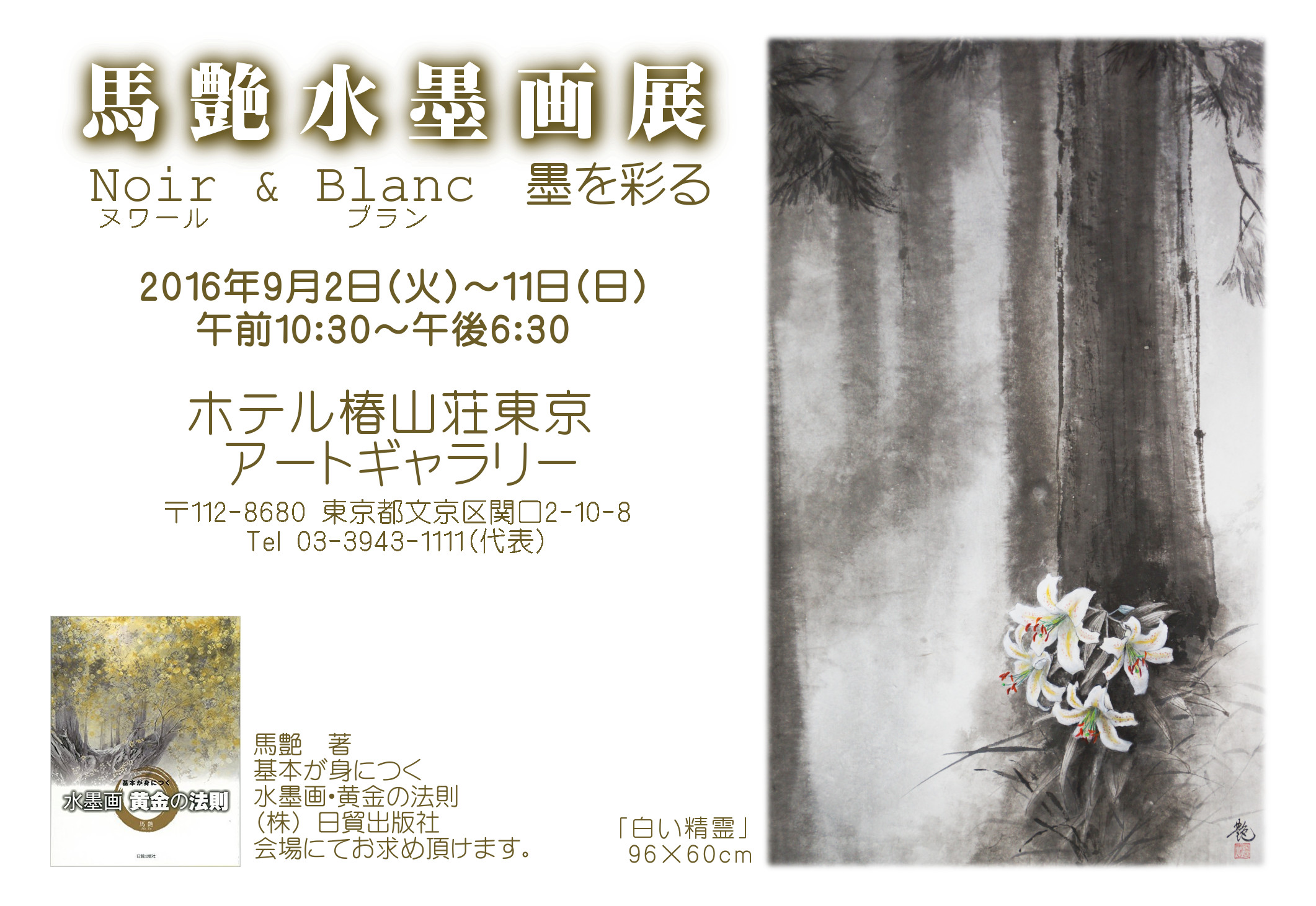 水墨画の白は、描かないところの表現であり、東洋の美が大事にする間・空間。伝統の黄金の法則と革新を試みた作品となっております。なお今回の展覧会に合わせて馬艶の著書「水墨画・黄金の法則」が日貿出版社より発売されました。期間中、随時サイン会を行っております。